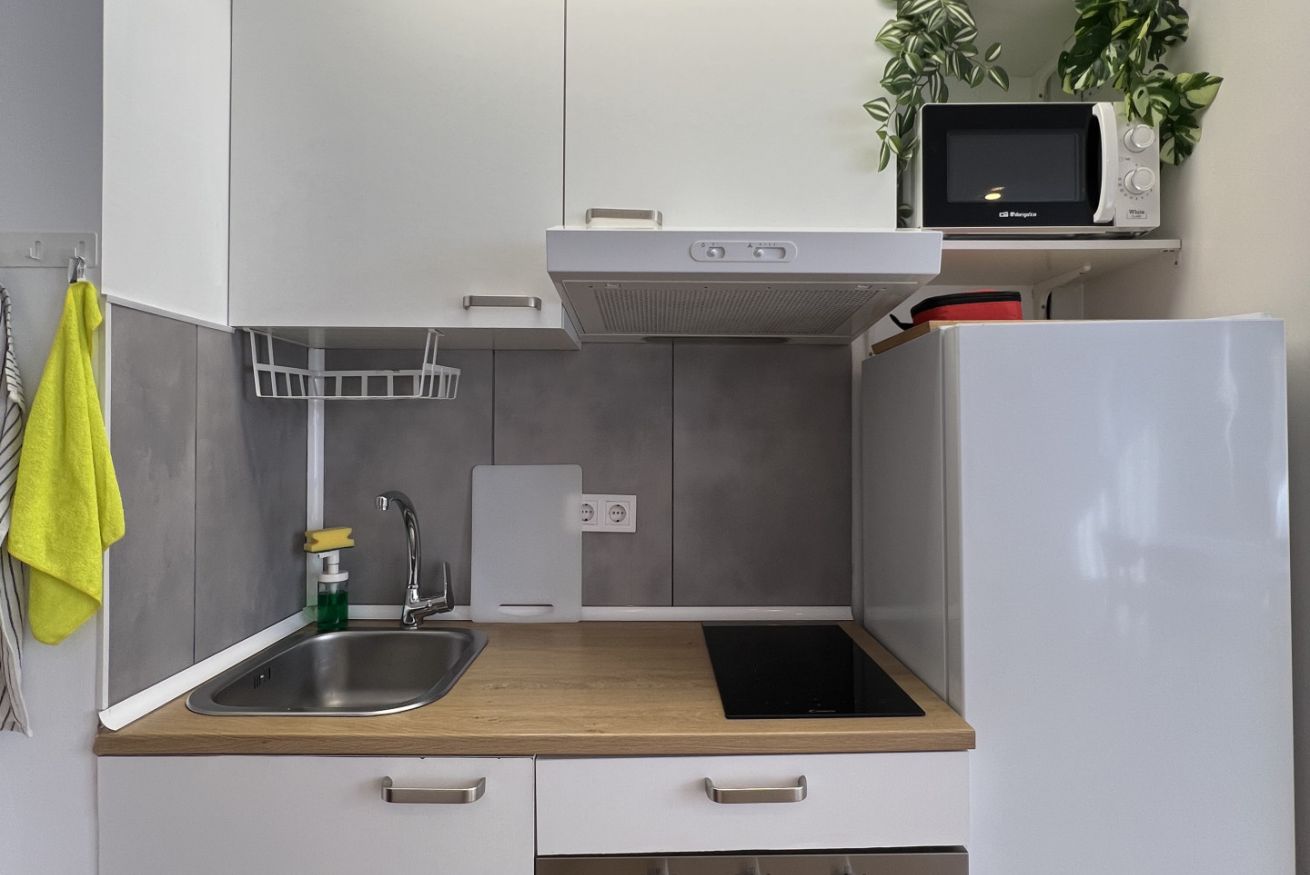 Este apartamento con aire acondicionado consta de 1 dormitorio, una sala de estar, una cocina totalmente equipada con nevera y cafetera, y 1 baño con ducha y secador de pelo. Hay toallas y ropa de cama en el apartamento.