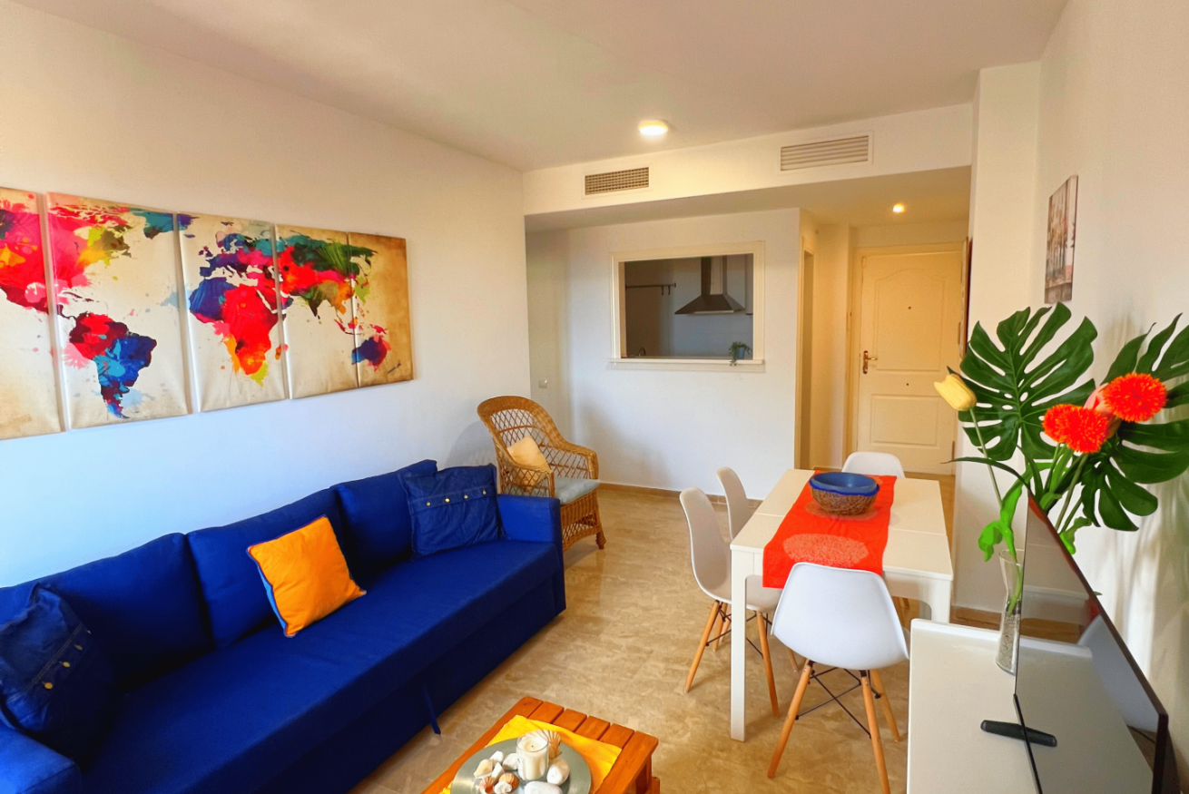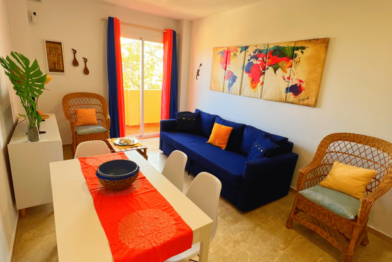 Bonito apartamento con 2 habitaciones y 2 baños. Se encuentra ubicado en una de las mejores zonas de Manilva donde podrás disfrutar de su maravilloso clima, buenas playas y restaurantes de comida típica.